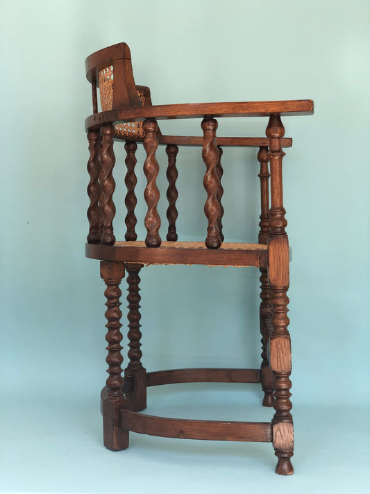 Edwardian Barley Twist Corner Chair With Cane 19th Century