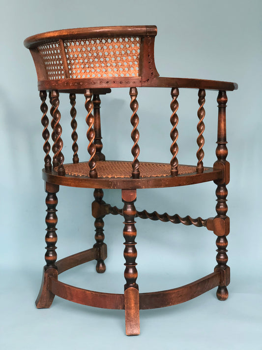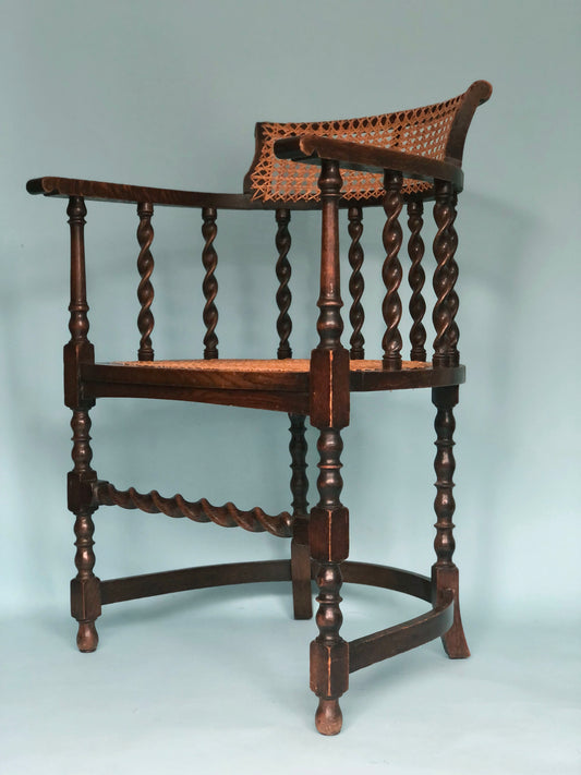 Edwardian Barley Twist Corner Chair With Cane Early 20th Century