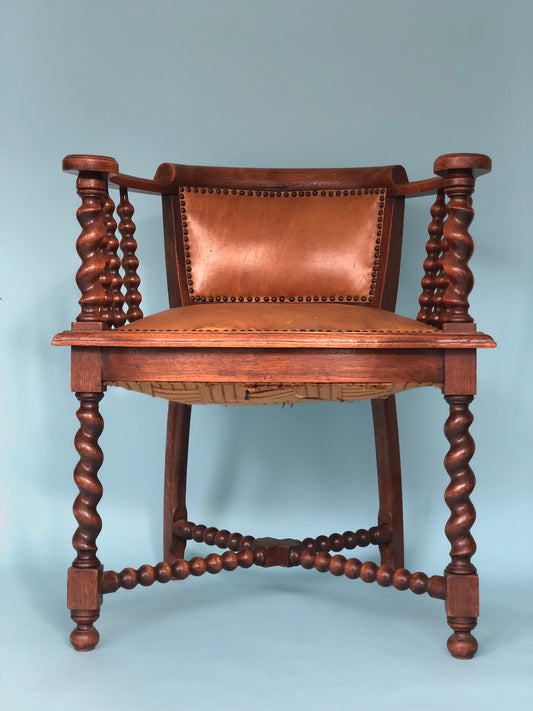 Edwardian Barley Twist Desk Chair With Leather 19th Century