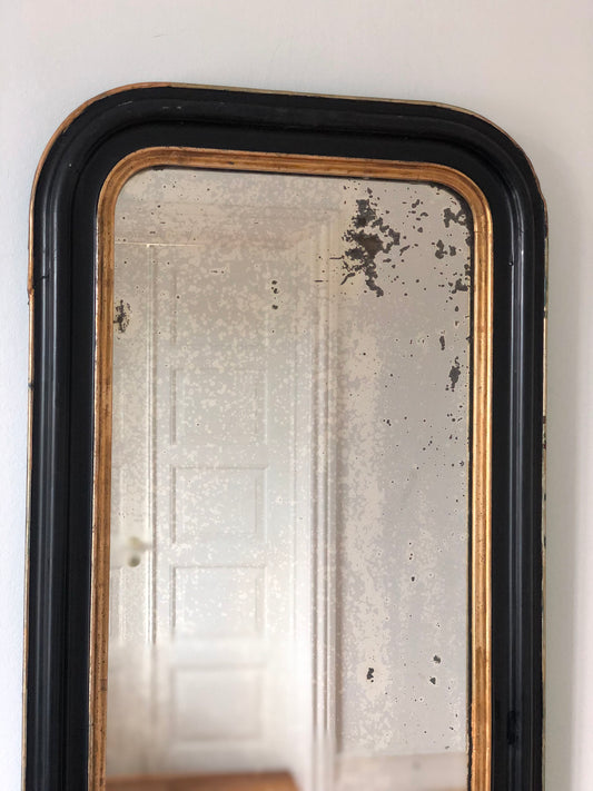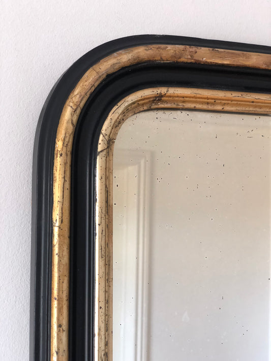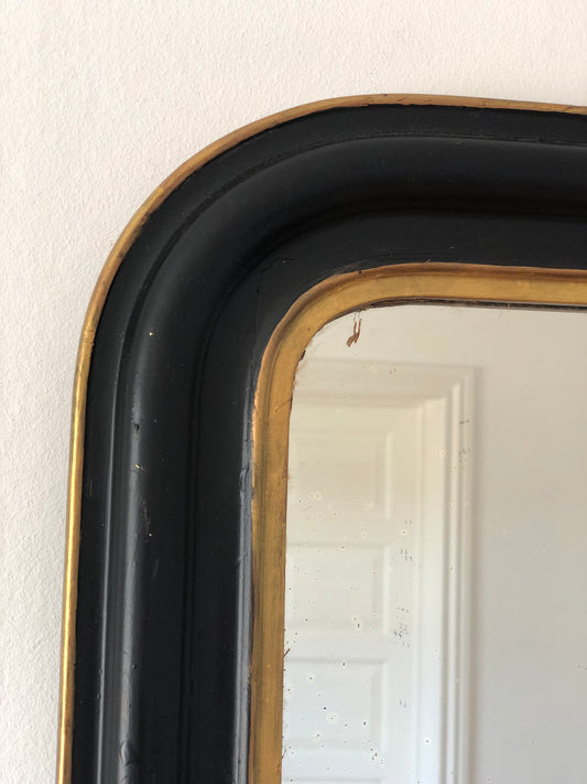 Large Antique Louis Philippe French Mirror in Black and Gold, Late 19th Century