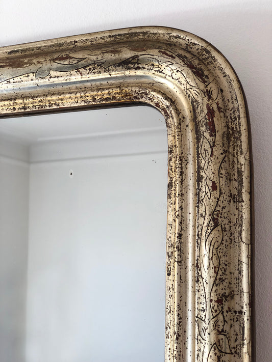 Large Antique Louis Philippe French Giltwood Mirror in Silver and Gold, Late 19th Century