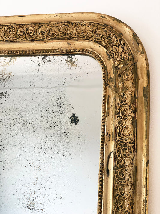Large Antique Louis Philippe French Giltwood Mirror Late 19th Century
