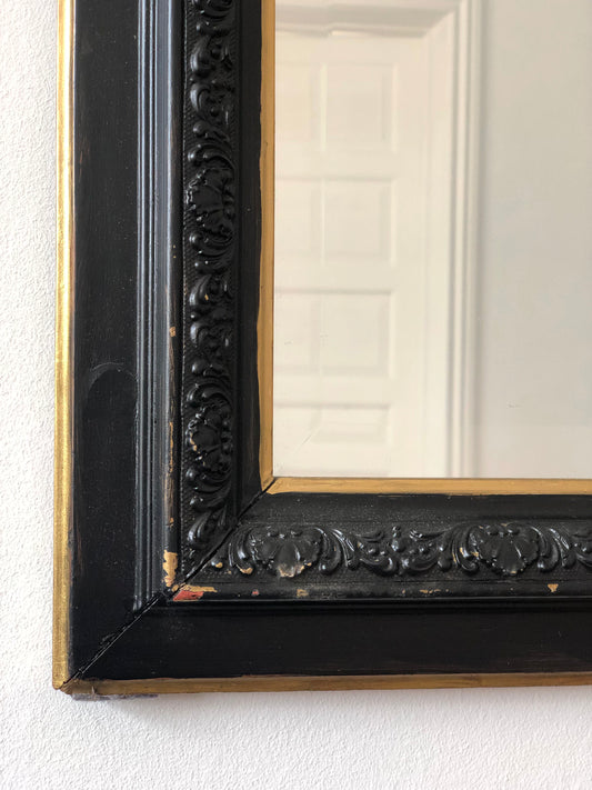 Large Antique Louis Philippe French Giltwood Mirror in Black, Late 19th Century