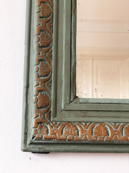 Large Antique Louis Philippe French Mirror in Green and Gold, Late 19th Century