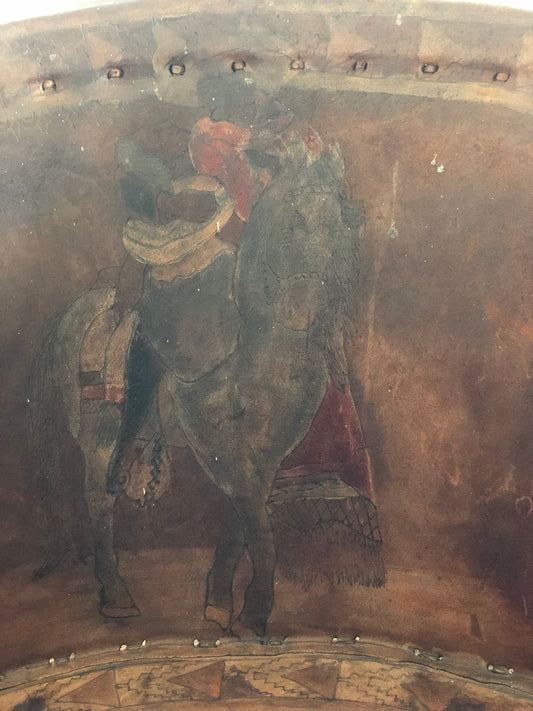 Mexican Equipale Folk Art Chair with Hand-Painted Bullfight Scene 1930s
