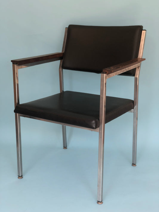 Metal Alloy Armchairs In Wenge And Skai 1970s. Set Of 2