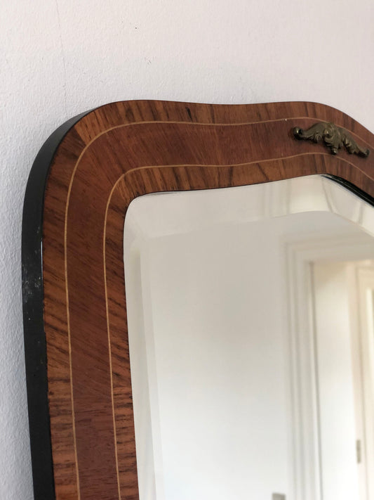 Mid-Century Curved Bevelled Mirror with Mahogany Veneer Denmark