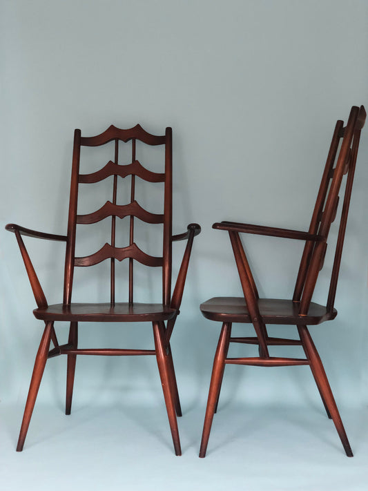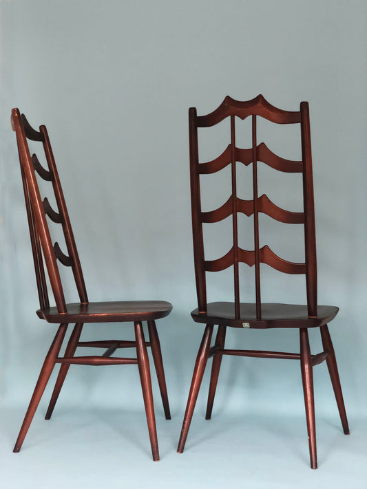 Mid Century Walnut Ladderback Dining Chairs Lucian Ercolani for Ercol England Set of 2