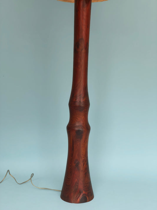 Mid Century Wooden Floor Lamp With Flower Design Lampshade