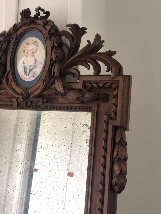 Richly Carved Mahogany Napoleon III Mirror Verre Eglomise Late 19th Century