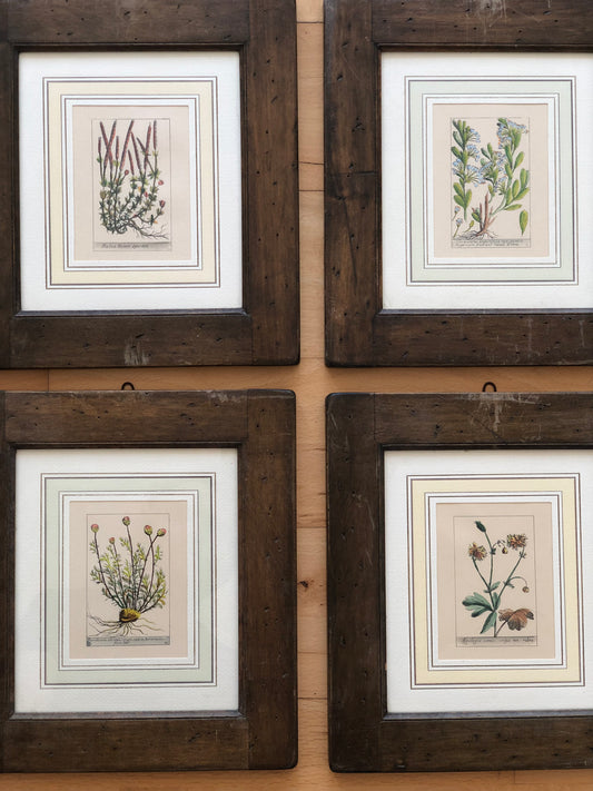 Set of 6 Hand-Coloured Botanical Prints in Rustic Wood Frames Italy 1980s