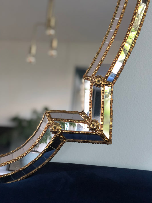 Spanish Handcrafted Small Mirror Hollywood Regency 1980s