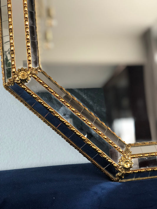 Venetian Octagonal Mirror Hollywood Regency 1980s