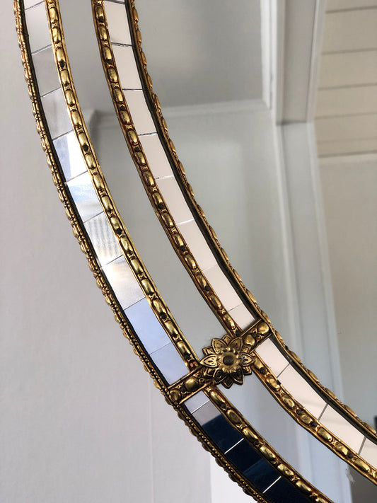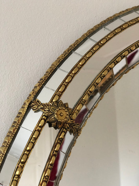 Vintage Venetian Oval Mirror Hollywood Regency in Gold Spain 1990s