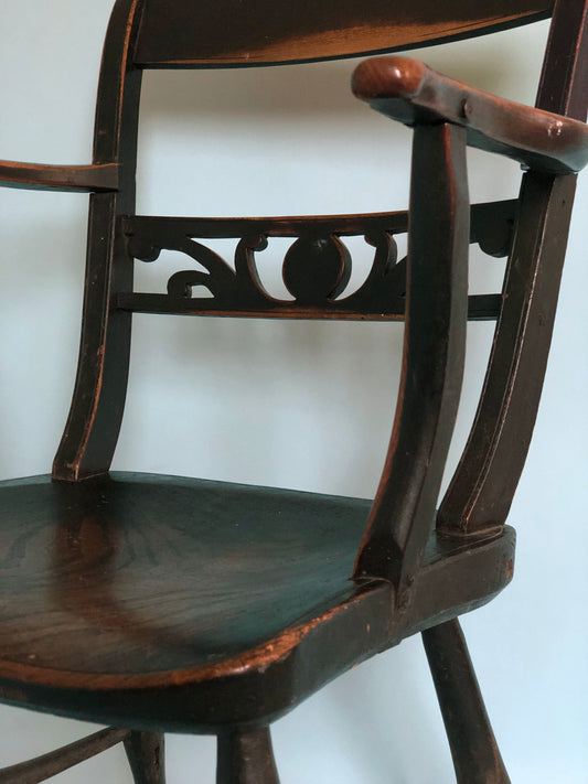 Jugendstil High Back Chair Elm Wood Early 20th Century
