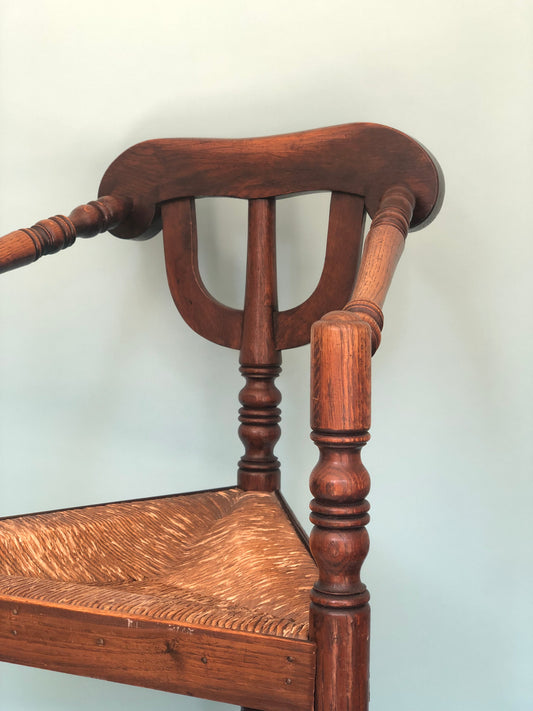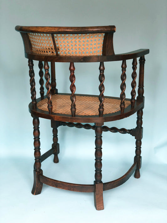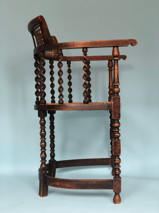 Early 20th Century Edwardian Barley Twist Corner Chair With Cane