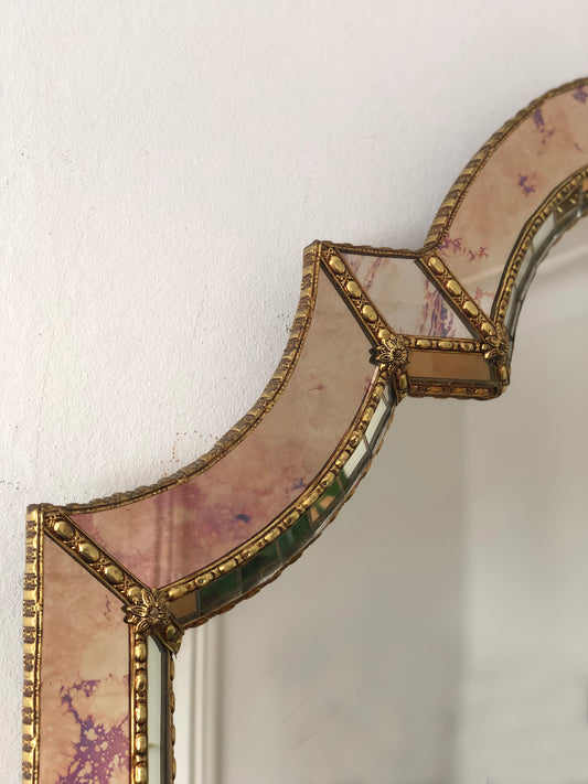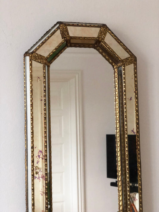 Large Vintage Venetian Full Length Brass Mirror – Gold Hollywood Regency, Spanish 1990s
