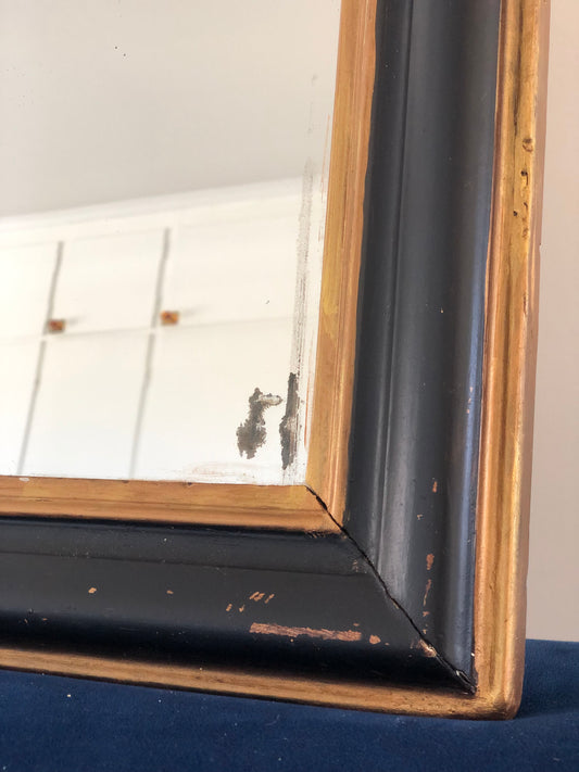 High Quality Antique Louis Philippe Mirror In Black and Gold France Late 19th Century