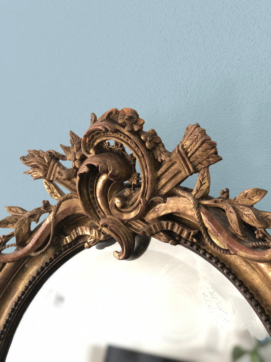 Antique French Oval Carved Giltwood Mirror 19th Century