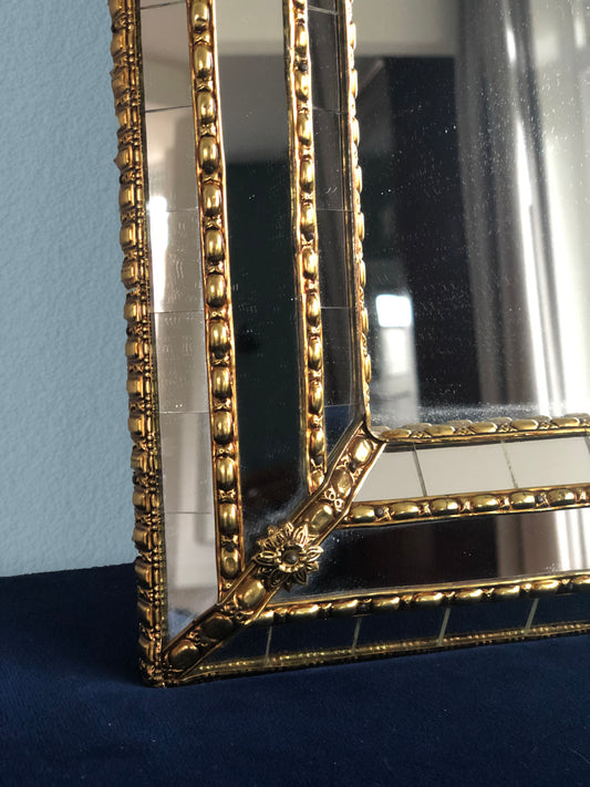 Vintage Facet-Cut Mirror In Gold And Silver 1970s