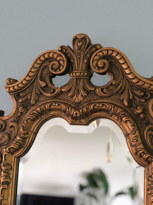 Vintage Giltwood Oval Heavy Mirror 1980s