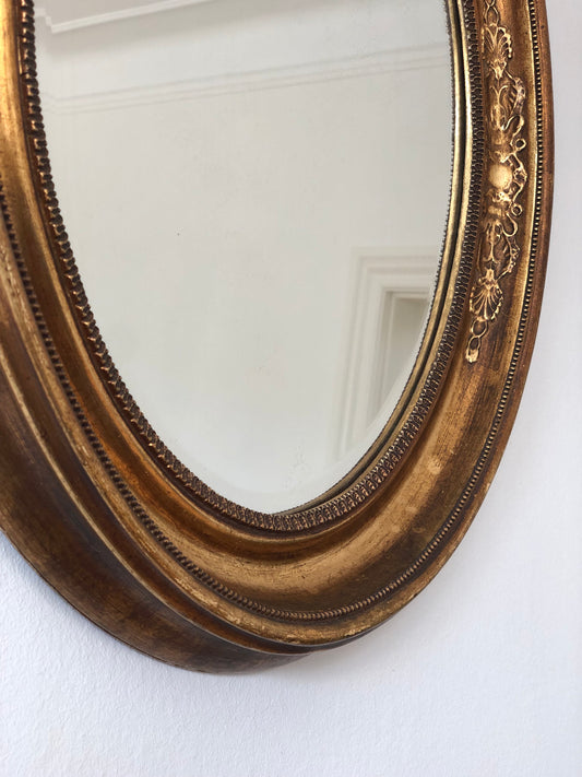 Vintage Oval Silver Bevelled Mirror with Golden Roses