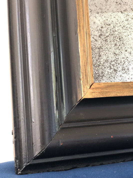 Large Antique Louis Philippe Mirror In Black and Gold France Late 19th Century