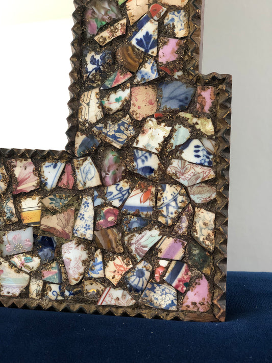 Colorful Mosaic Decorated Giltwood Mirror Portugal 1950s