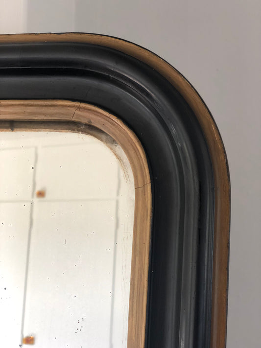 Antique Louis Philippe Mirror In Black and Gold France Late 19th Century