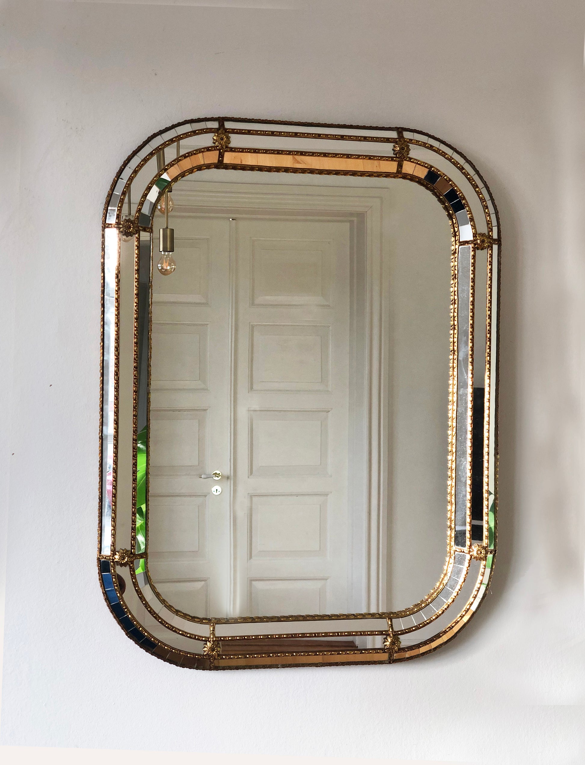 Vintage Venetian large beveled mirror in Spanish style, dating back to the 1990s.