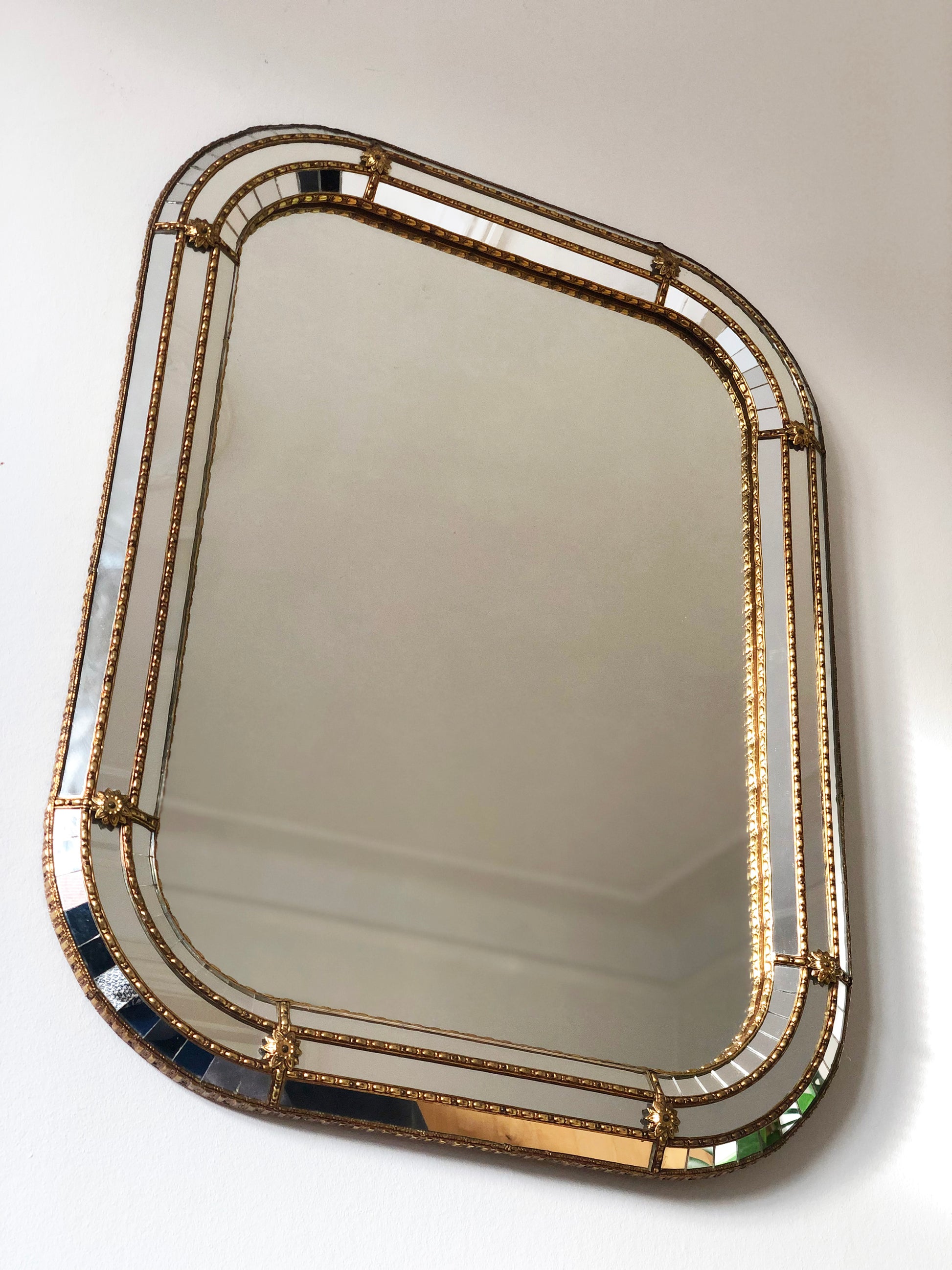 Large Vintage Venetian Rectangular Mirror Hollywood Regency in Gold Spain 1990s