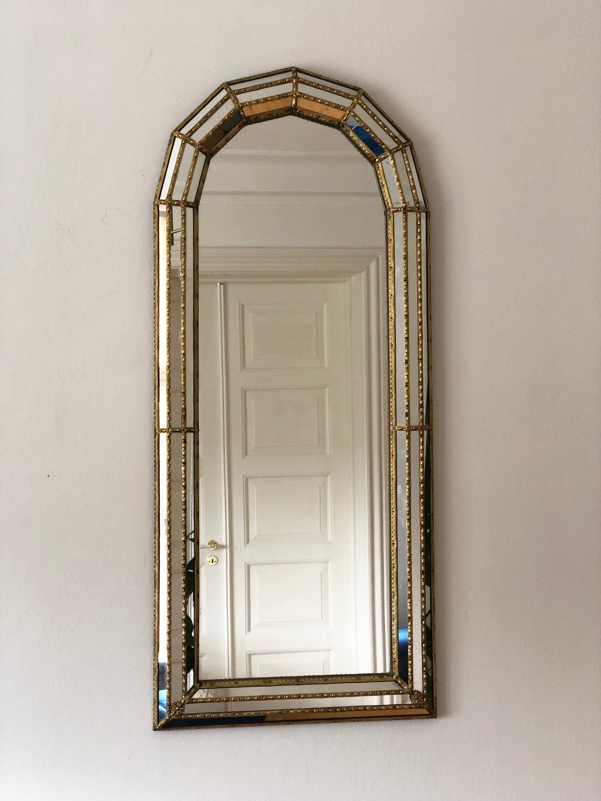 Pair of Large Vintage Venetian Full Length Hollywood Regency Mirror in Gold Spain 1990s