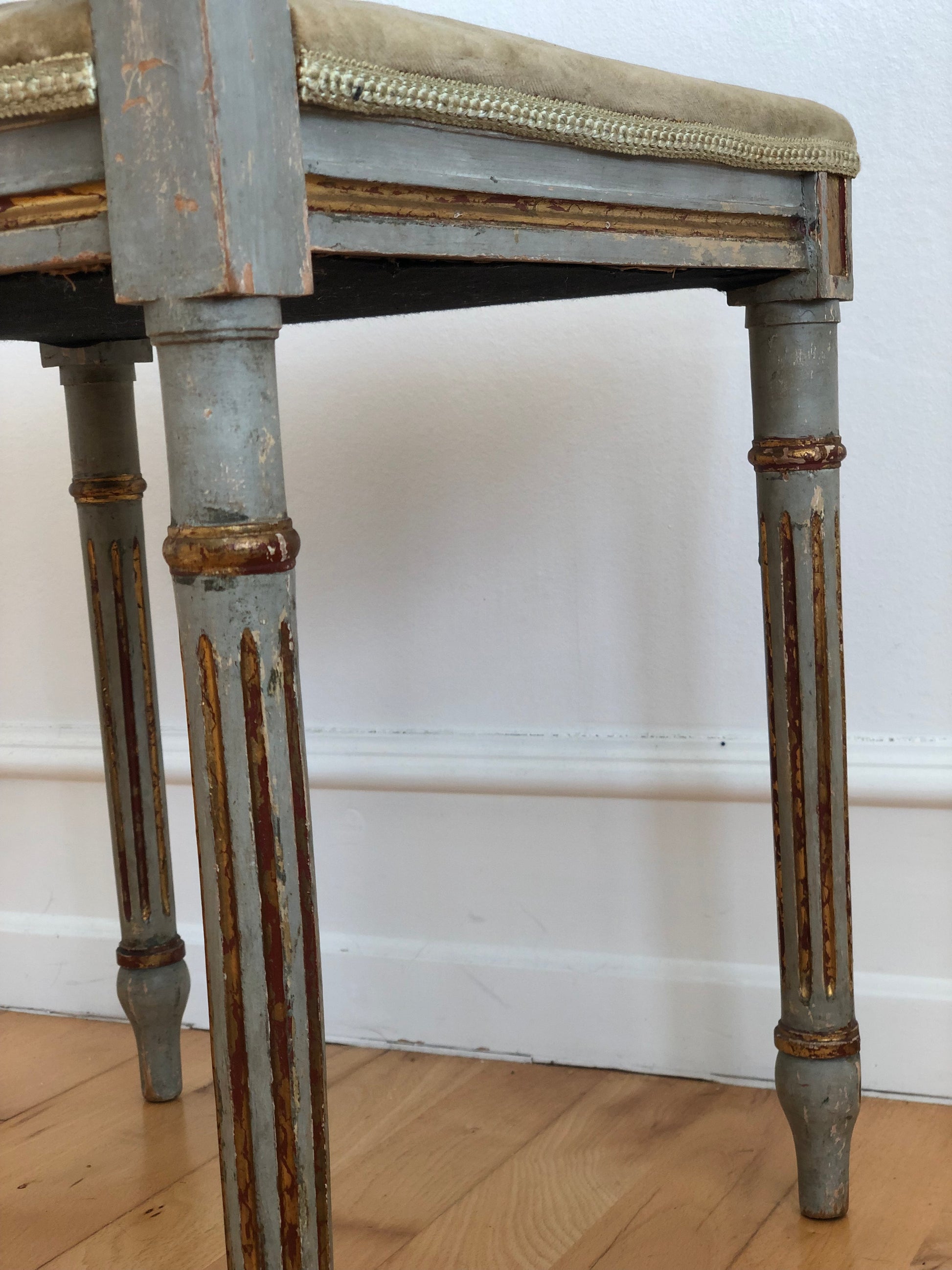 Material: Painted and giltwood, velour upholstery