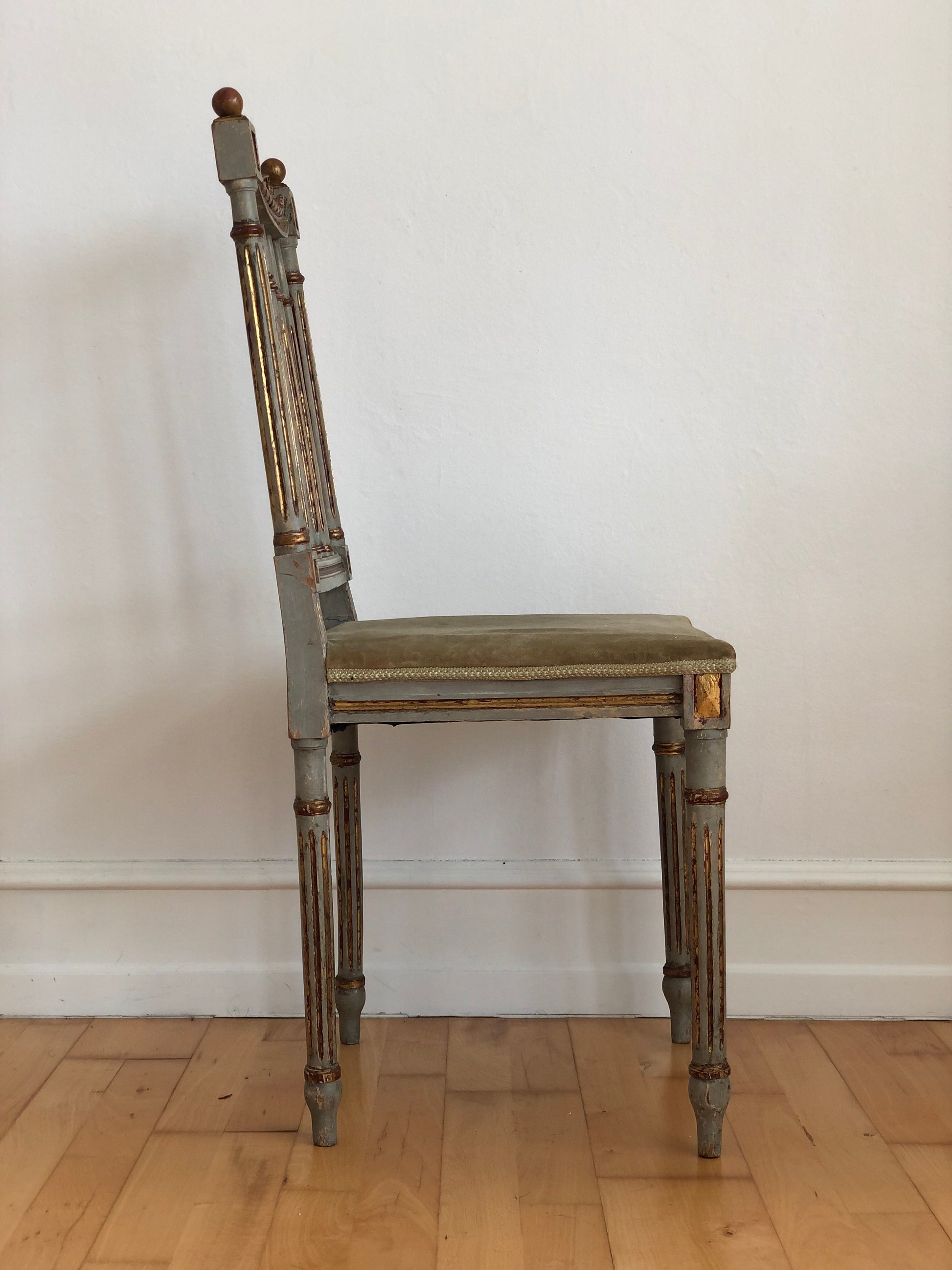 A beautiful pair of late 18th century Gustavian side chairs, crafted in Sweden and strongly inspired by the French Louis XVI style. Gustav III drew much influence from Versailles, but the Scandinavian interpretation was less opulent and more understated. These chairs reflect that elegance — refined, classical lines in a lighter and subtler expression.