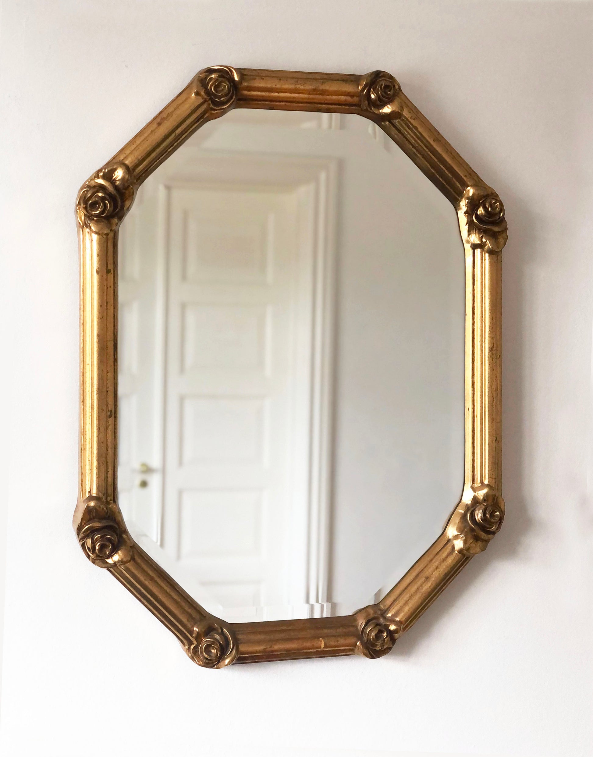 Vintage Octagonal Gilt Bevelled Mirror with Rose Accents