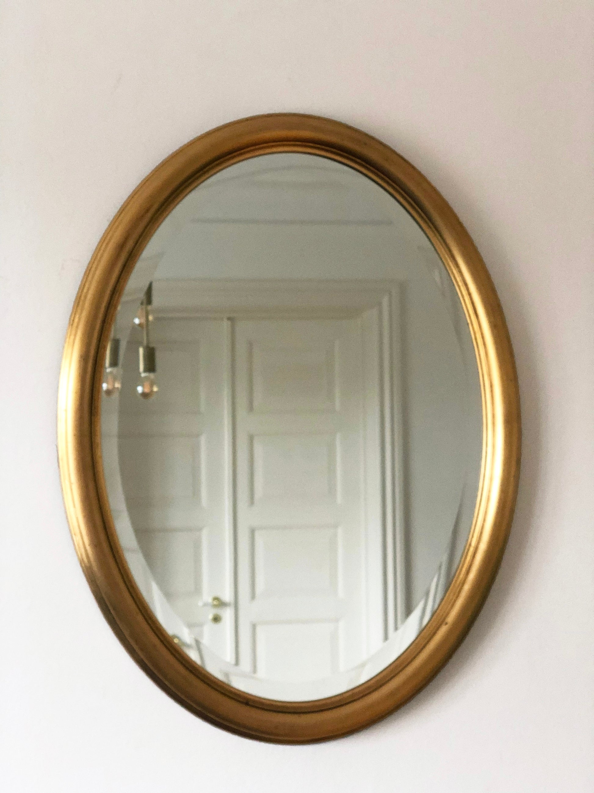 Vintage Oval Giltwood Beveled Mirror Belgium